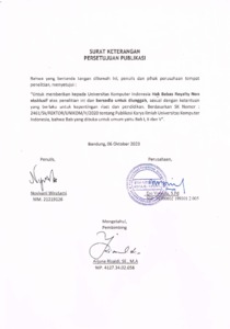 UNIKOM_NOVIYANI WIRATAMI_SURAT KETERANGAN PERSETUJUAN PUBLIKASI.pdf - Published Version