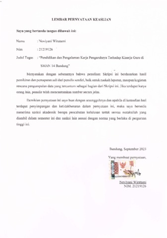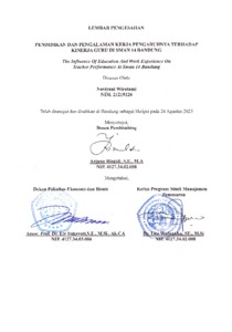 Wiratami, Noviyani (2023) Pendidikan Dan Pengalaman Kerja Pengaruhnya Terhadap Kinerja Guru Di Sman 14 Bandung. Other thesis, Universitas Komputer Indonesia.