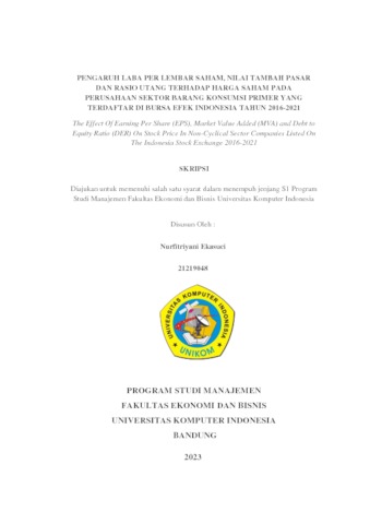 Ekasuci, Nurfitriyani (2023) Pengaruh Laba Per Lembar Saham, Nilai Tambah Pasar Dan Rasio Utang Terhadap Harga Saham Pada Perusahaan Sektor Barang Konsumsi Primer Yang Terdaftar Di Bursa Efek Indonesia Tahun 2016-2021. Other thesis, Universitas Komputer Indonesia.