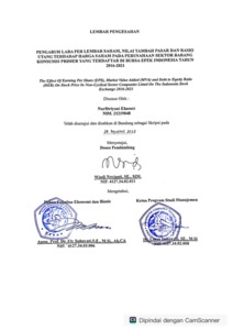 | Uncontrolled Keywords: | Laba per Saham, Nilai Tambah Pasar, Rasio Utang, Harga Saham |
