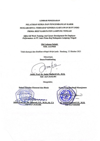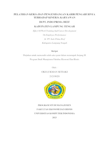 Setiaki, Oki Lukman (2023) Pelatihan Kerja Dan Pengembangan Karir Pengaruhnya Terhadap Kinerja Karyawan Di Pt. Indo Prima Beef Kabupaten Lampung Tengah. Other thesis, Universitas Komputer Indonesia.