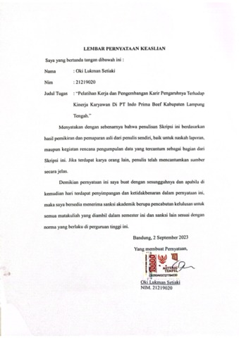 UNIKOM_OKI LUKMAN SETIAKI_LEMBAR PERNYATAAN KEASLIAN.pdf - Published Version
