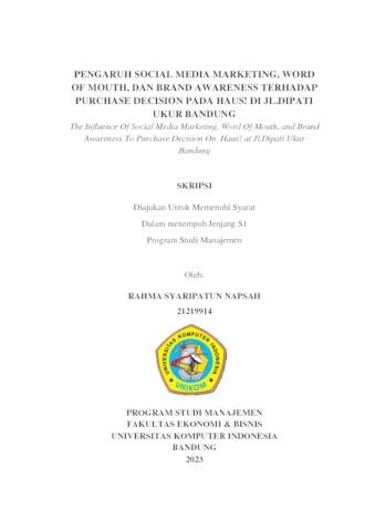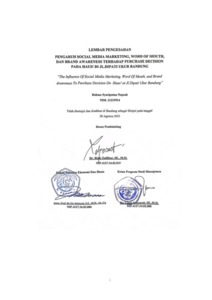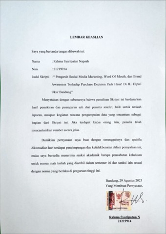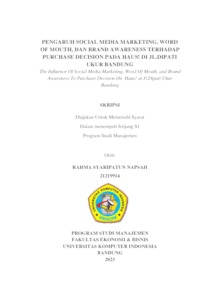 Napsah, Rahma Syaripatun (2023) Pengaruh Social Media Marketing, Word Of Mouth, Dan Brand Awareness Terhadap Purchase Decision Pada Haus! Di Jl.Dipati Ukur Bandung. Other thesis, Universitas Komputer Indonesia.