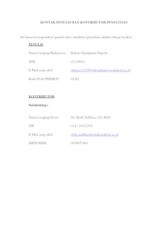 UNIKOM_Rahma Syaripatun Napsah_Kontak Penulis.pdf - Published Version