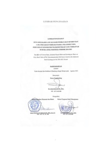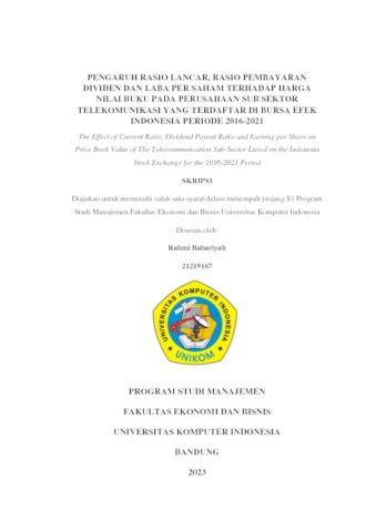 | Uncontrolled Keywords: | Rasio Lancar, Rasio Pembayaran Dividen, Laba Per Saham dan Harga Nilai Buku |