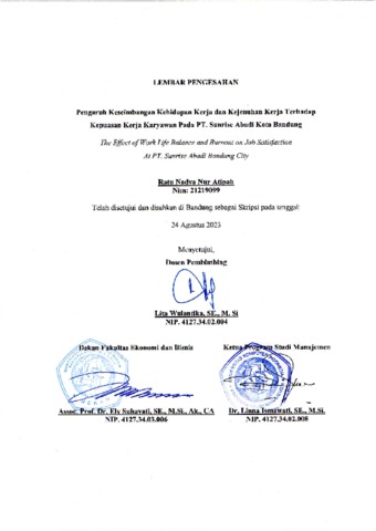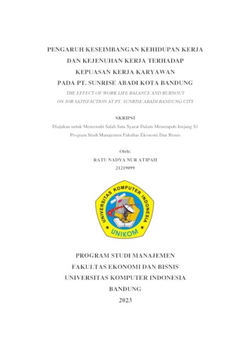 Atipah, Ratu Nadya Nur (2023) Pengaruh Keseimbangan Kehidupan Kerja Dan Kejenuhan Kerja Terhadap Kepuasan Kerja Karyawan Pada PT. Sunrise Abadi Kota Bandung. Other thesis, Universitas Komputer Indonesia.