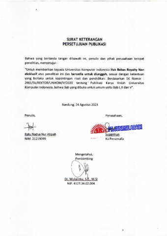 UNIKOM_RATU NADYA NUR ATIPAH_SURAT KETERANGAN PERSETUJUAN PUBLIKASI.pdf - Published Version