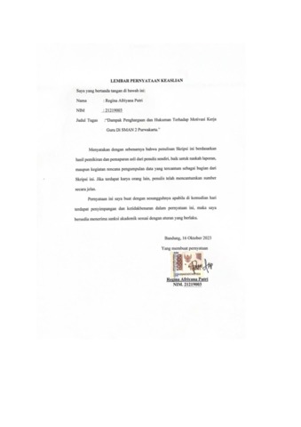UNIKOM_REGINA AFRIYANA PUTRI_LEMBAR KEASLIAN.pdf - Published Version