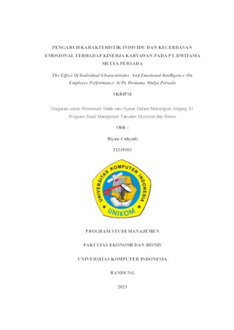 Cahyadi, Riyan (2023) Pengaruh Karakteristik Individu Dan Kecerdasan Emosional Terhadap Kinerja Karyawan Pada PT. Dwitama Mulya Persada. Other thesis, Universitas Komputer Indonesia.