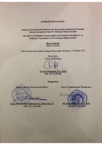 | Uncontrolled Keywords: | Karakteristik Individu, Kecerdasan Emosional, Kinerja Karyawan |