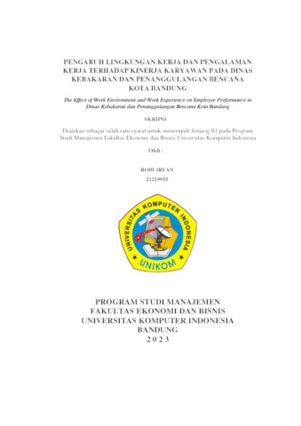 Irfan, Robi (2023) Pengaruh Lingkungan Kerja Dan Pengalaman Kerja Terhadap Kinerja Karyawan Pada Dinas Kebakaran Dan Penanggulangan Bencana Kota Bandung. Other thesis, Universitas Komputer Indonesia.