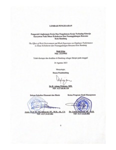 | Uncontrolled Keywords: | Lingkungan kerja, Pengalaman kerja, Kinerja karyawan |