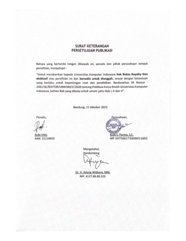 UNIKOM_ROBI IRFAN_LAMPIRAN SURAT KETERANGAN PERSETUJUAN PUBLIKASI.pdf - Published Version