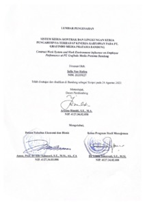 Haliza, Sefia Nur (2023) Sistem Kerja Kontrak Dan Lingkungan Kerja Pengaruhnya Terhadap Kinerja Karyawan Pada Pt. Grafindo Media Pratama Bandung. Other thesis, Universitas Komputer Indonesia.