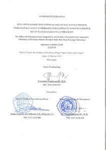 | Uncontrolled Keywords: | Kompetensi Kewirausahaan, Inovasi Produk, Keunggulan Bersaing |