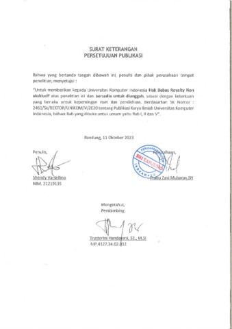 UNIKOM_Shendy Varsellino_SURAT KETERANGAN PERSETUJUAN PUBLIKASI.pdf - Published Version