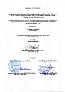Athaullah, Syifa Putri (2023) Perilaku Penciptaan Bersama Nilai Pelanggan Ditinjau dari Keinovatifan Konsumen dan Keterlibatan Pelanggan (Survey pada Konsumen Akun Instagram Scarlett Whitening Generasi Z Kota Bandung). Other thesis, Universitas Komputer Indonesia.