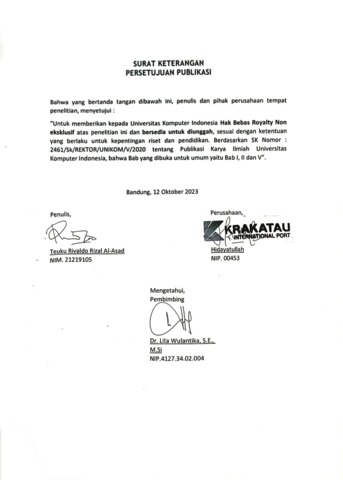 UNIKOM_TEUKU RIVALDO RIZAL AL-ASAD_SURAT KETERANGAN PERSETUJUAN PUBLIKASI.pdf - Published Version