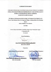 | Uncontrolled Keywords: | Pengetahuan Kewiraushaan, Penggunaan Media Sosial, Keberhasilan Usaha |