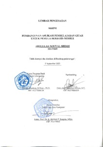 | Uncontrolled Keywords: | Pembelajaran, Alat musik gitar, Teknologi Mobile, Deteksi Suara |