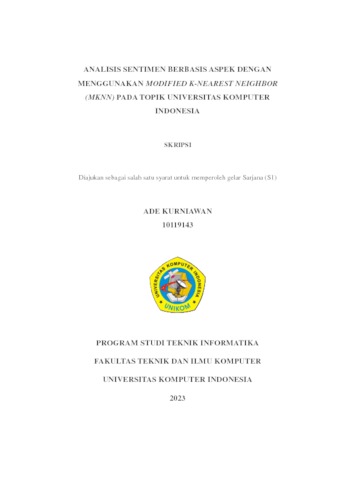 Kurniawan, Ade (2023) Analisis Sentimen Berbasis Aspek Dengan Menggunakan Modified K-Nearest Neighbor (Mknn) Pada Topik Universitas Komputer Indonesia. Other thesis, Universitas Komputer Indonesia.