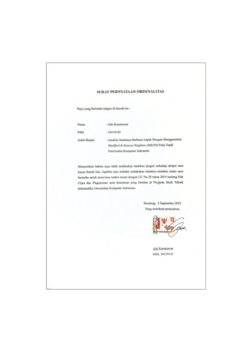 19. UNIKOM_ADE KURNIAWAN_SURAT PERNYATAAN ORISINALITAS.pdf - Published Version
