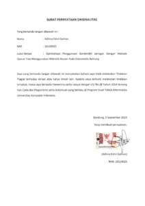 Gathan, Adhira Fahri (2023) Optimalisasi Penggunaan Bandwidth Jaringan Dengan Metode Queue Tree Menggunakan Mikrotik Router Pada Diskominfo Belitung. Other thesis, Universitas Komputer Indonesia.