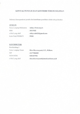 UNIKOM_ADITYA FIRMANSYAH_LEMBAR KONTAK PENUIS _ KONTRIBUTOR.pdf - Published Version
