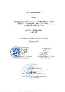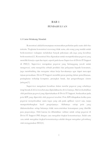 Tujuan penelitian ini adalah untuk memberikan informasi tingkat konsentrasi pegawai di Divisi IT Support JNE. Supervisor mengalami kesulitan dalam menilai pegawai yang sebaiknya tetap berada di divisi tersebut atau dipindahkan ke divisi lainnya. Penentuan pemindahan pegawai yang dilakukan adalah berdasarkan poin KPI yang didapatkan setiap bulannya, sedangkan poin KPI yang diambil tidak dapat mengukur tingkat konsentrasi yang menjadi salah satu faktor penting dalam menentukan kemampuan yang dimiliki pegawainya. Salah satu cara untuk mengukur tingkat konsentrasi adalah dengan menerapkan data minning menggunakan algoritma LVQ yang diambil dari data gelombang otak pegawai. Untuk mendapatkan pengetahuan tingkat konsentrasi maka dibangun aplikasi yang dapat mengklasifikasikan tingkat konsentrasi berdasarkan data gelombang otak yang diambil setiap pegawai dalam rentang waktu tertentu menggunakan algoritma LVQ. Cara pengambilan data gelombang otak adalah dengan menggunakan Electroencephalography (EEG) melalui alat Brainlink Lite. Data gelombang otak diambil dari 6 pegawai yang menyelesaikan salah satu pekerjaan yaitu crimping kabel LAN. Setiap pegawai dilakukan 2 kali pengujian yang dapat mewakili pekerjaannya, sehingga total data yang diambil adalah sebanyak 12 data. Agar data gelombang otak yang diambil bisa diolah maka diperlukan ekstraksi wavelet dengan filter Daubechies 4 untuk mengurangi noise saat pengambilan data. Berdasarkan proses tersebut, aplikasi yang dibuat dapat mengklasifikasikan gelombang otak pegawai menjadi 2 kondisi yaitu tingkat konsentrasi tinggi atau konsentrasi rendah dengan tingkat akurasi sebesar 80% dari 10 data gelombang otak yang diuji. Dengan begitu dapat disimpulkan bahwa aplikasi yang dibuat dapat memberikan rekomendasi tingkat konsentrasi pegawai di divisi IT Support JNE, sehingga dapat membantu Supervisor dalam penilaian poin KPI.