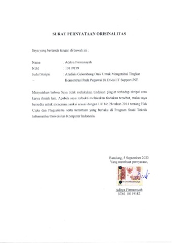 UNIKOM_ADITYA FIRMANSYAH_SURAT PERNYATAAN ORISINILITAS.pdf - Published Version