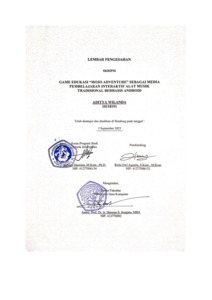 | Uncontrolled Keywords: | Game Edukasi, Alat Musik Tradisional, Media Pembelajaran, Simulasi, Android. |