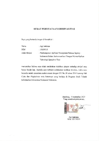 20. UNIKOM_AGI SUTRISNA_SURAT PERNYATAAN ORISINALITAS.pdf - Published Version