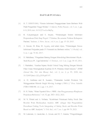 | Uncontrolled Keywords: | Sistem Informasi, Single Moving Average (SMA), penentuan jumlah pengadaan, ketidaksesuaian penerimaan barang. |