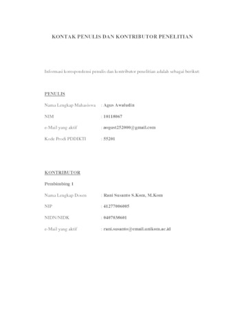 UNIKOM_AGUS AWALUDIN_LEMBAR KONTAK PENULIS _ KONTRIBUTOR.pdf - Published Version