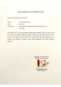 UNIKOM_AHMAD FAHMI FAHLEVI_SURAT PERNYATAAN ORISINALITAS.pdf - Published Version