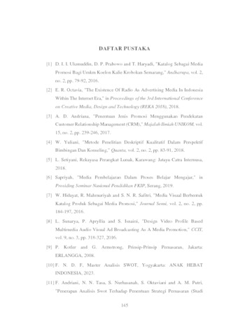 | Uncontrolled Keywords: | Media Promosi, Jasa, Produk, Berbasis Website, SWOT |