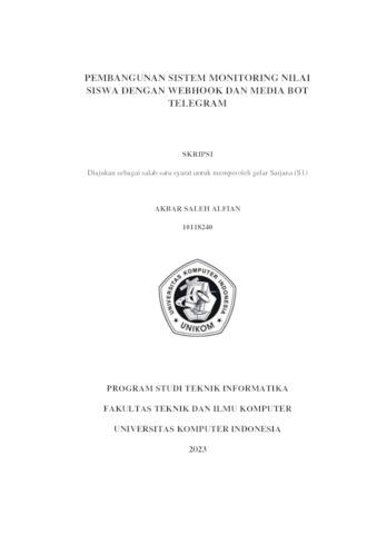 Alfian, Akbar Saleh (2023) Pembangunan Sistem Monitoring Nilai Siswa Dengan Webhook Dan Media Bot Telegram. Other thesis, Universitas Komputer Indonesia.