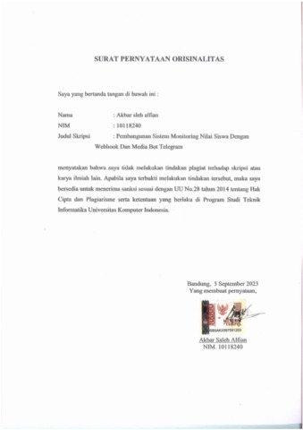 20. UNIKOM_AKBAR SALEH ALFIAN_SURAT PERNYATAAN ORISINALITAS.pdf - Published Version
