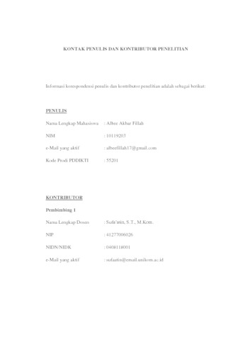 18. UNIKOM_ALBEE AKBAR FILLAH_LEMBAR KONTAK PENULIS _ KONTRIBUTOR.pdf - Published Version