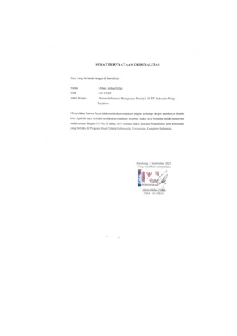 Fillah, Albee Akbar (2023) Sistem Informasi Manajemen Produksi Di PT Indosains Niaga Sejahtera. Other thesis, Universitas Komputer Indonesia.