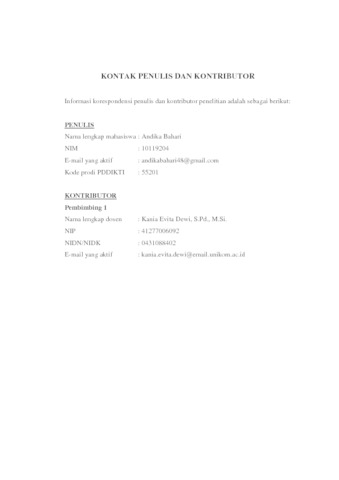 18.UNIKOM_ANDIKA BAHARI_KONTAK PENULIS _ KONTRIBUTOR.pdf - Published Version