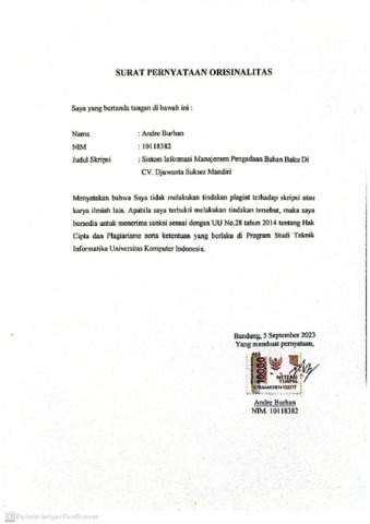 20.UNIKOM_ANDRE BURHAN_SURAT PERNYATAAN ORISINALITAS.pdf - Published Version