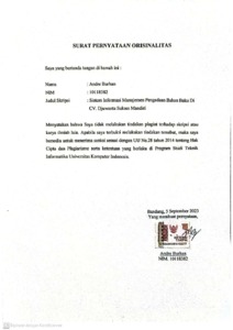 Burhan, Andre (2023) Sistem Informasi Manajemen Pengadaan Bahan Baku Di Cv. Djuwanta Sukses Mandiri. Other thesis, Universitas Komputer Indonesia.
