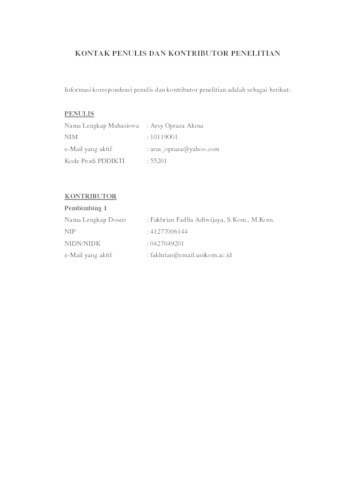18.UNIKOM_ARSY OPRAZA AKMA_LEMBAR KONTAK PENULIS DAN KONTRIBUTOR.pdf - Published Version