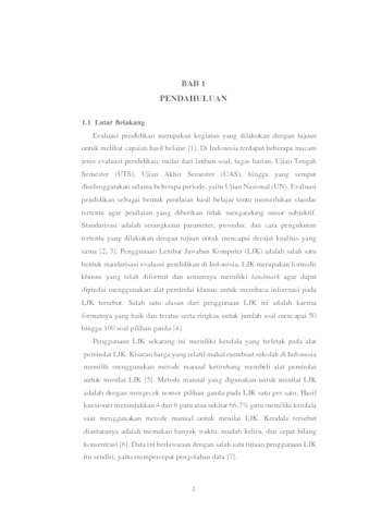 Lembar Jawaban Komputer (LJK) merupakan bentuk standarisasi evaluasi pendidikan di Indonesia. LJK yang sebelumnya digunakan untuk keperluan Ujian Nasional kini digunakan oleh sekolah untuk keperluan ujian pribadi. Namun, masih terdapat sekolah yang melakukan penilaian LJK dengan metode hitung satu per satu atau manual. Metode ini memiliki banyak kendala, seperti mudah lelah, mudah keliru, dan cepat hilang konsentrasi. Aplikasi penilaian LJK yang ada saat ini pun umumnya mengharuskan pengguna untuk menggunakan template LJK yang sudah disediakan oleh aplikasi tersebut atau mengharuskan untuk menggunakan perangkat khusus. Penelitian ini bertujuan untuk membangun aplikasi penilaian LJK dengan memanfaatkan Optical Mark Recognition (OMR) dan teknologi kompresi TinyJPG untuk mengurangi waktu pemrosesan. Hasil pengujian menunjukkan aplikasi ini memiliki akurasi sebesar 86% saat diuji terhadap 30 lembar LJK milik SMAN M***** Kab. B*****. Pengujian juga menunjukkan bahwa aplikasi ini mampu mendeteksi lebih dari satu format LJK dengan batasan tertentu. Selain itu, aplikasi ini tidak mengharuskan pengguna menggunakan template tertentu serta tidak memerlukan perangkat khusus.