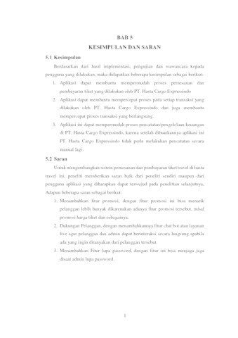 PT. Hasta Cargo Expresindo merupakan salah satu perusahaan yang bergerak di bidang transportasi darat, perusahaan ini membutuhkan sebuah aplikasi khususnya untuk masyarakat yang masih menggunakan jasa travel. Dalam permoresan pemesanan tiket yang dilakukan, PT. Hasta Cargo Expressindo menghadapi masalah kurang efektifnya proses pemesanan dan pembayaran tiket yang berlangsung karna masih menggunakan metode manual dalam prosesnya dan pengelolaan keuangan pun masih menggunakan metode manual dengan menginput satu per satu ke Excel yang dimana hal ini mengakibatkan kurang amannya proses transaksi dan juga banyak waktu terbuang. Pembangunan aplikasi ini bertujuan untuk mempercepat dan mempermudah proses pemesanan dan pembayaran tiket dengan E-Payment dan QRIS, mempermudah dalam proses pencatatan laporan keuangan dan meningkatkan kemanan transaksi. Pada penelitian ini menggunakan metode waterfall. Aplikasi ini memanfaatkan teknologi pembayaran dengan memanfaatkan API Tripay sebagai payment gateway untuk menangani setiap transaksi yang ada. Hasil pengujian blackbox dan pengujian beta menunjukan bahwa aplikasi ini memenuhi kebutuhan fungsional dan mampu mengatasi tantangan yang ada pada latar belakang penelitian. Dengan demikian, aplikasi ini berhasil mempercepat dan memudahkan proses pemesanan dan pembayaran tiket, pengelolaan keuangan menjadi lebih mudah, dan membantu meningkatkan keamanan dalam setiap transaksinya.