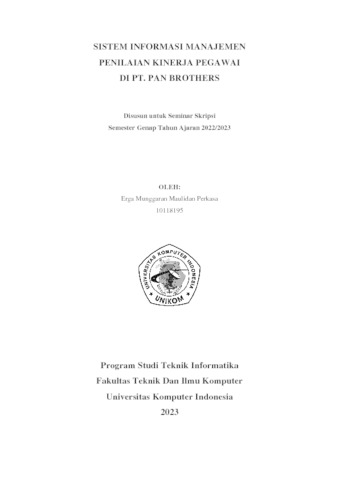 Perkasa, Erga Munggaran Maulidan (2023) Sistem Informasi Manajemen Penilaian Kinerja Pegawai Di Pt. Pan Brothers. Other thesis, Universitas Komputer Indonesia.