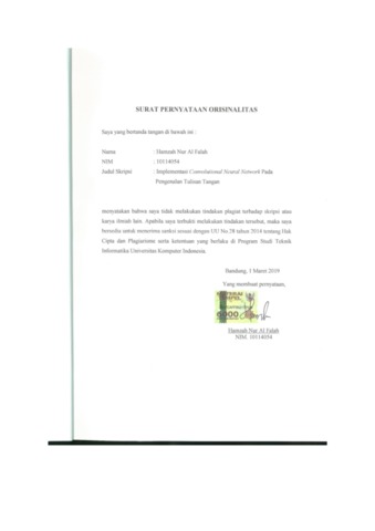 Al Falah, Hamzah Nur (2019) Implementasi Convolutional Neural Network Pada Pengenalan Tulisan Tangan. Other thesis, Universitas Komputer Indonesia.