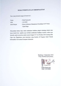 Fauziyyah, Firda (2023) Sistem Informasi Manajemen Persediaan Di PT Soka Cipta Niaga. Other thesis, Universitas Komputer Indonesia.