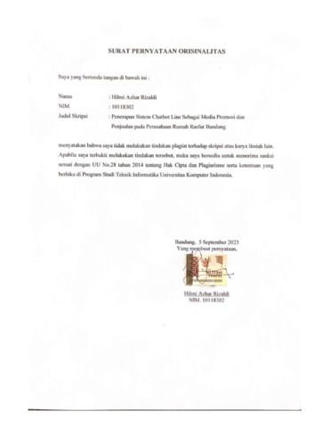 20. UNIKOM_HILMI AZHAR RIZALDI_SURAT PERNYATAAN ORISINALITAS_compressed.pdf - Published Version